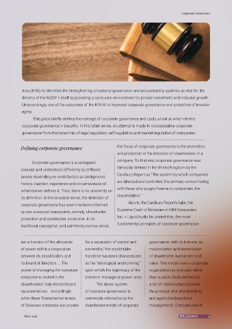 corporate governance in Lesotho. In this latter sense, an attempt is made to conceptualise corporate