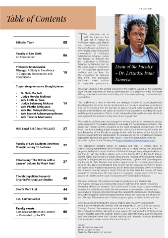 • Adv. Phetha Setlojoane It is my fervent hope that the diversity of topics explored in the magazine, and the
