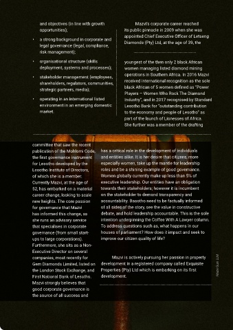 Gem Diamonds Limited, listed on development in a registered company called Exquisite Mazvi Guni LLM