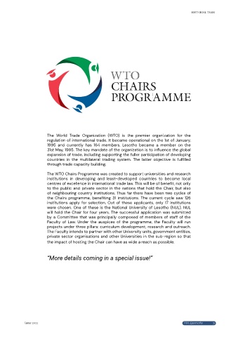 Faculty of Law. Under the auspices of the programme, the Faculty will run